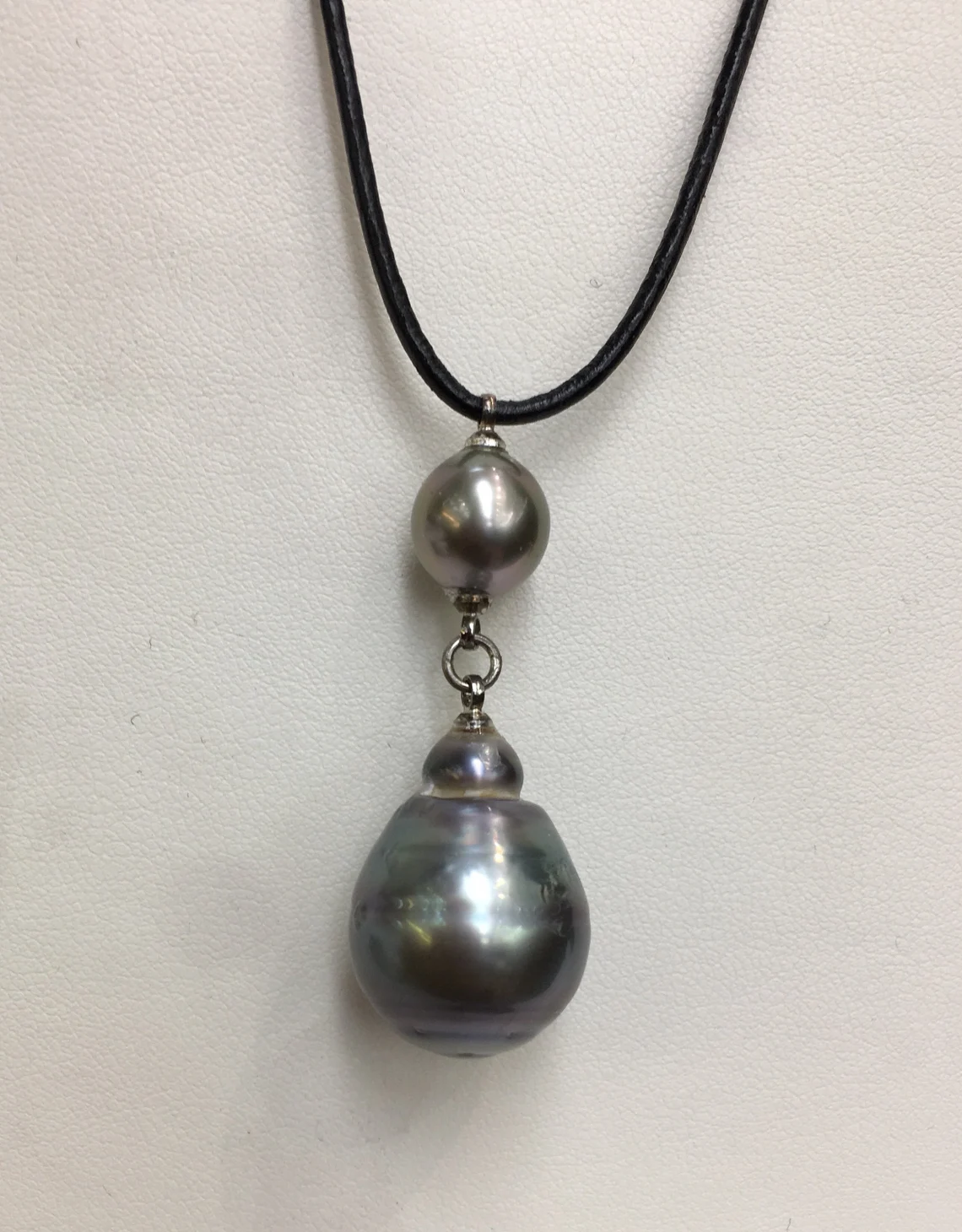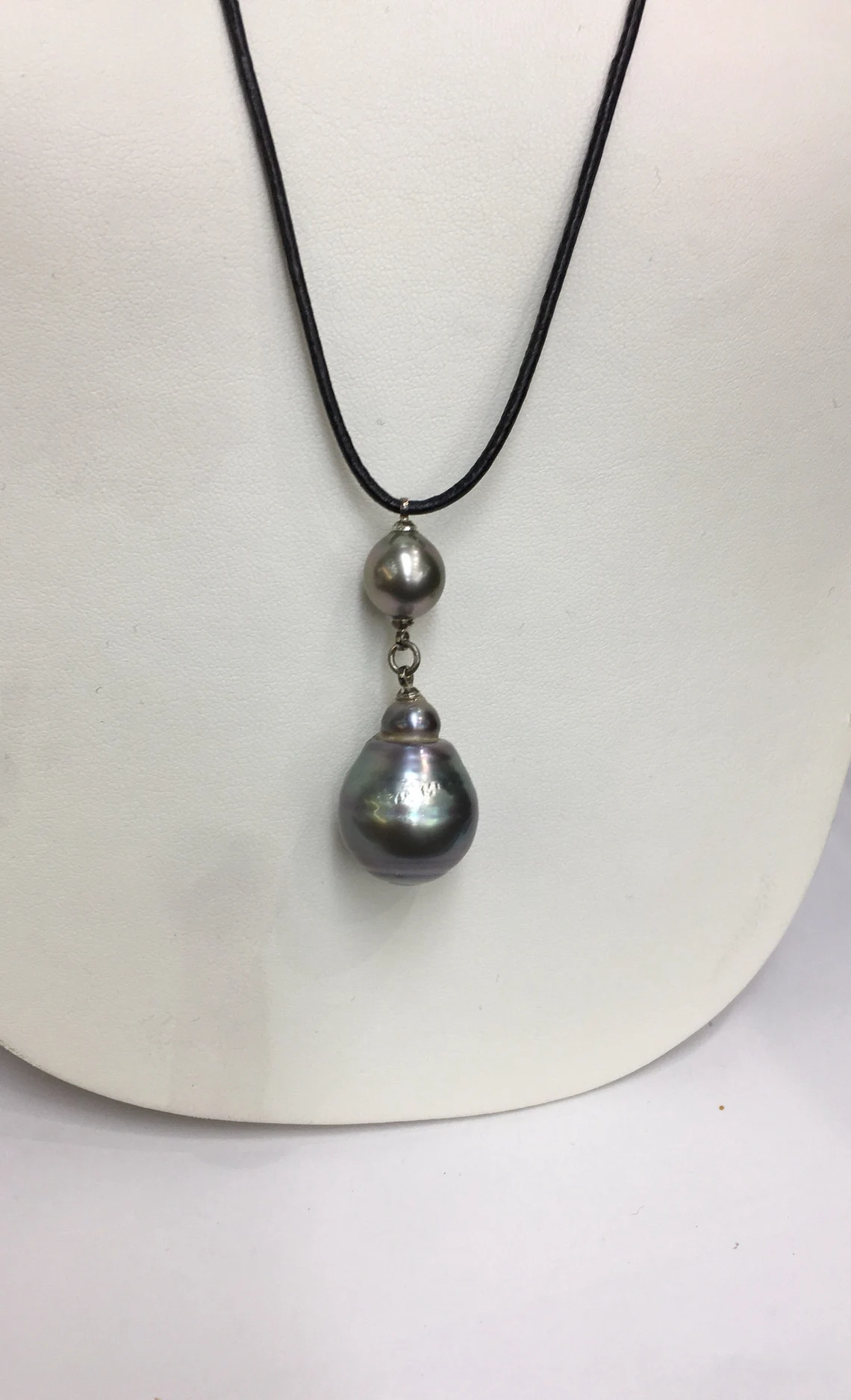 22x17mm Tahitian South Sea Pearl Cord Adjustable Leather Cord Hanging from 10mm Tahitian Pearls