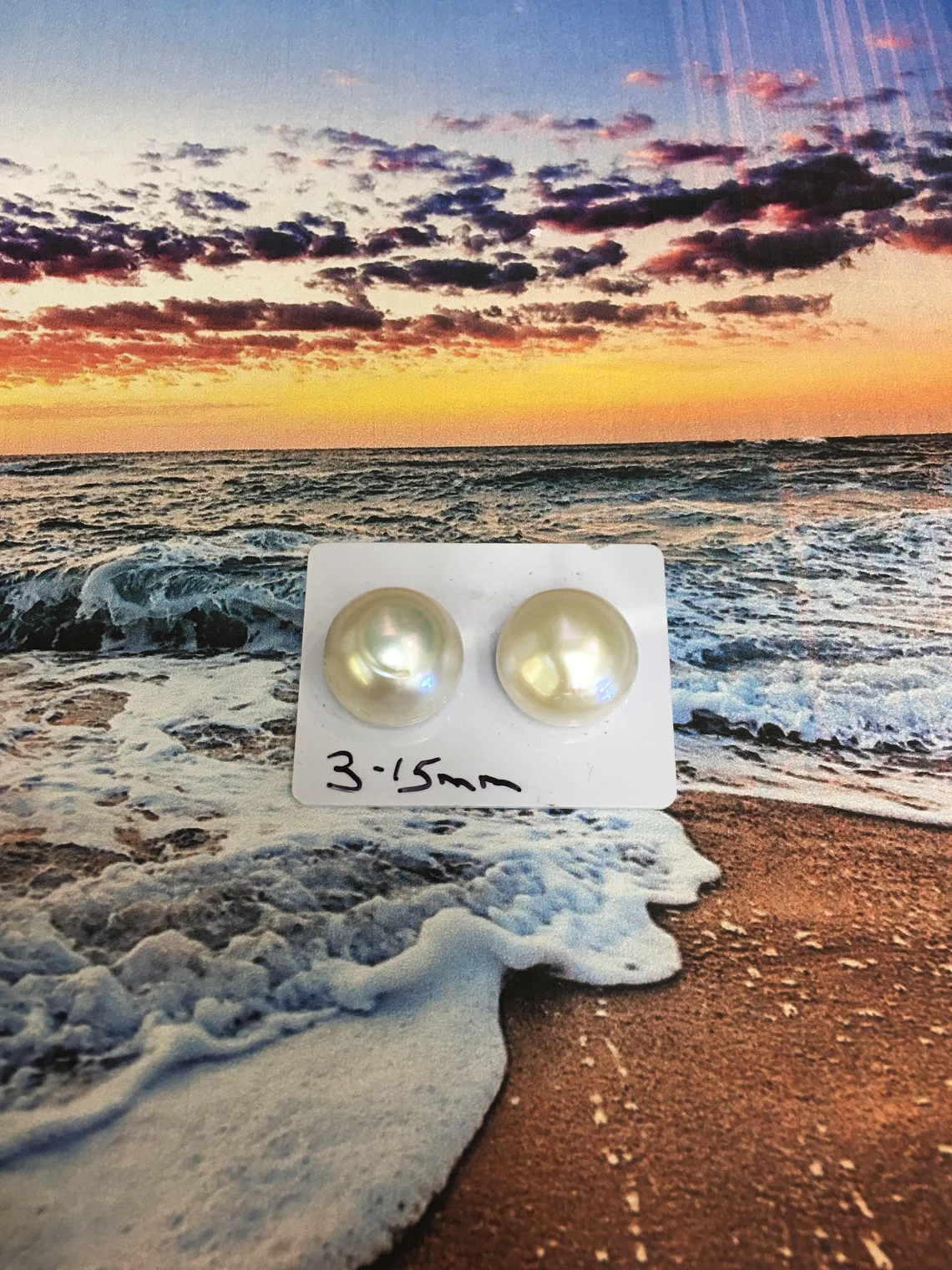 15mm. Freshwater cultured pearls. Good luster. Good match. Large pearl earrings.