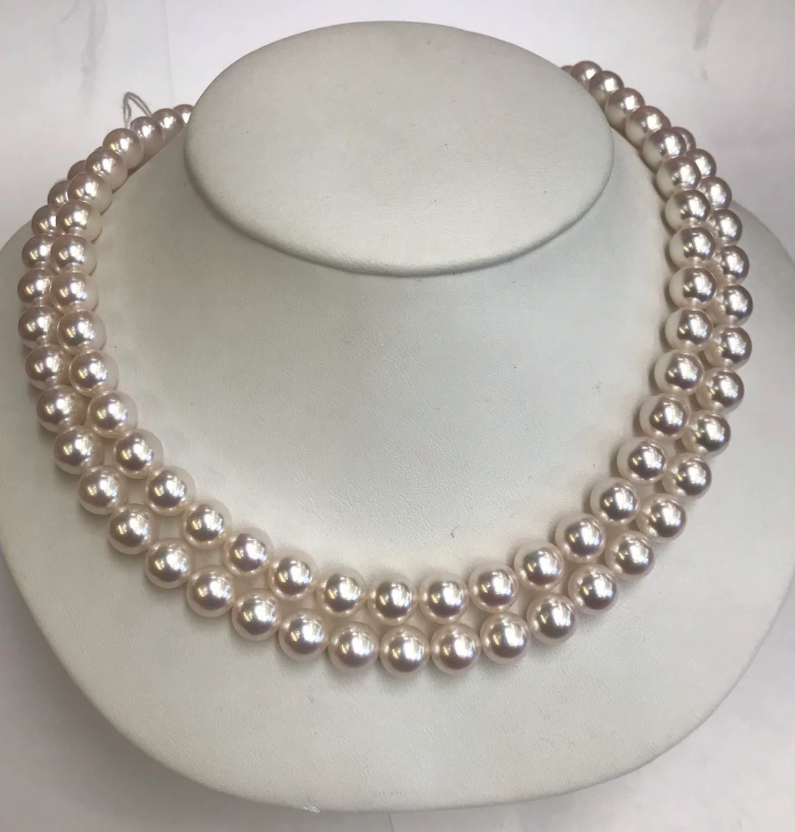 8mm AAA Gem Quality Akoya Pearls High Luster Great Color Untarnished 17" and 18" Two Strands 2, 14k Gold Clasps