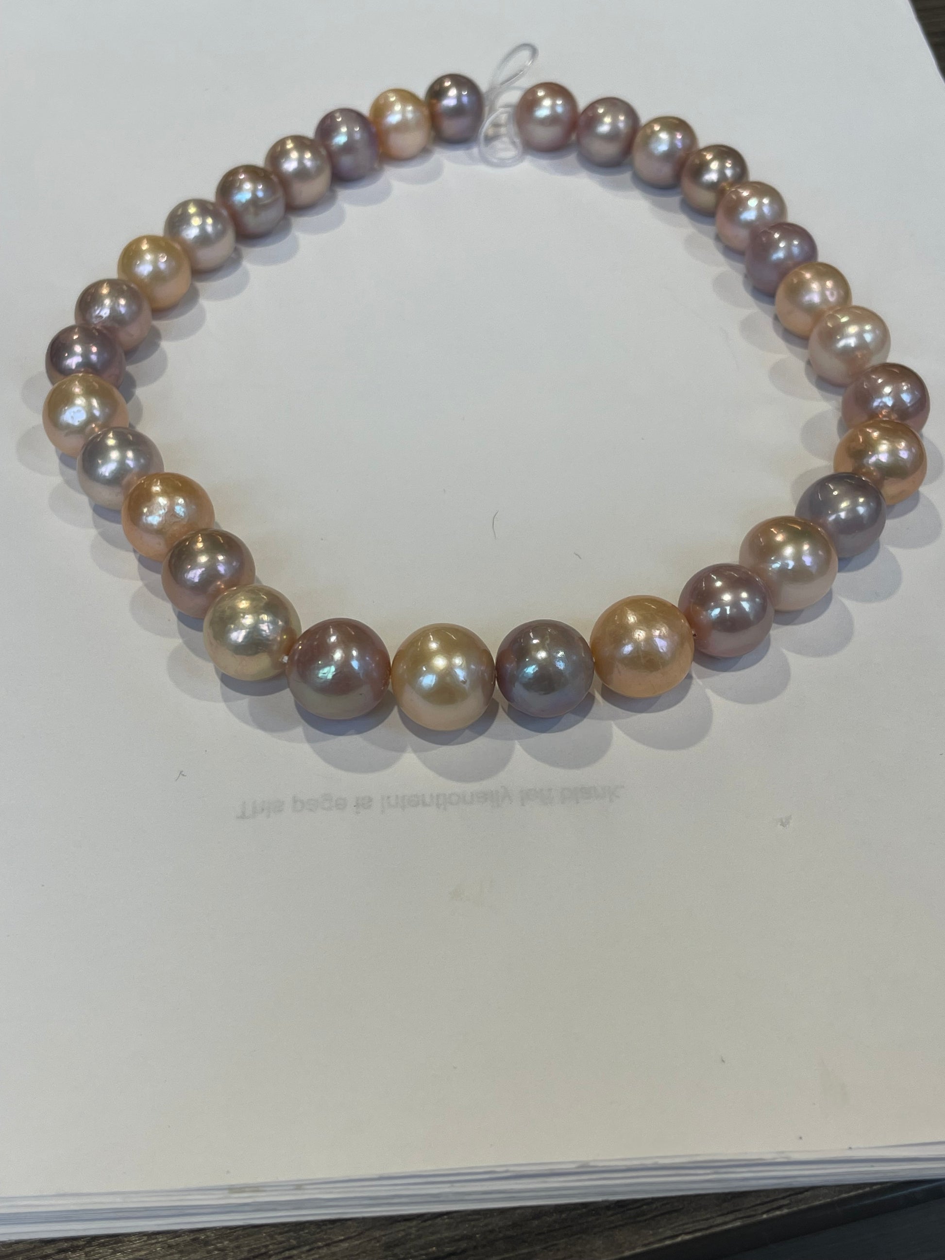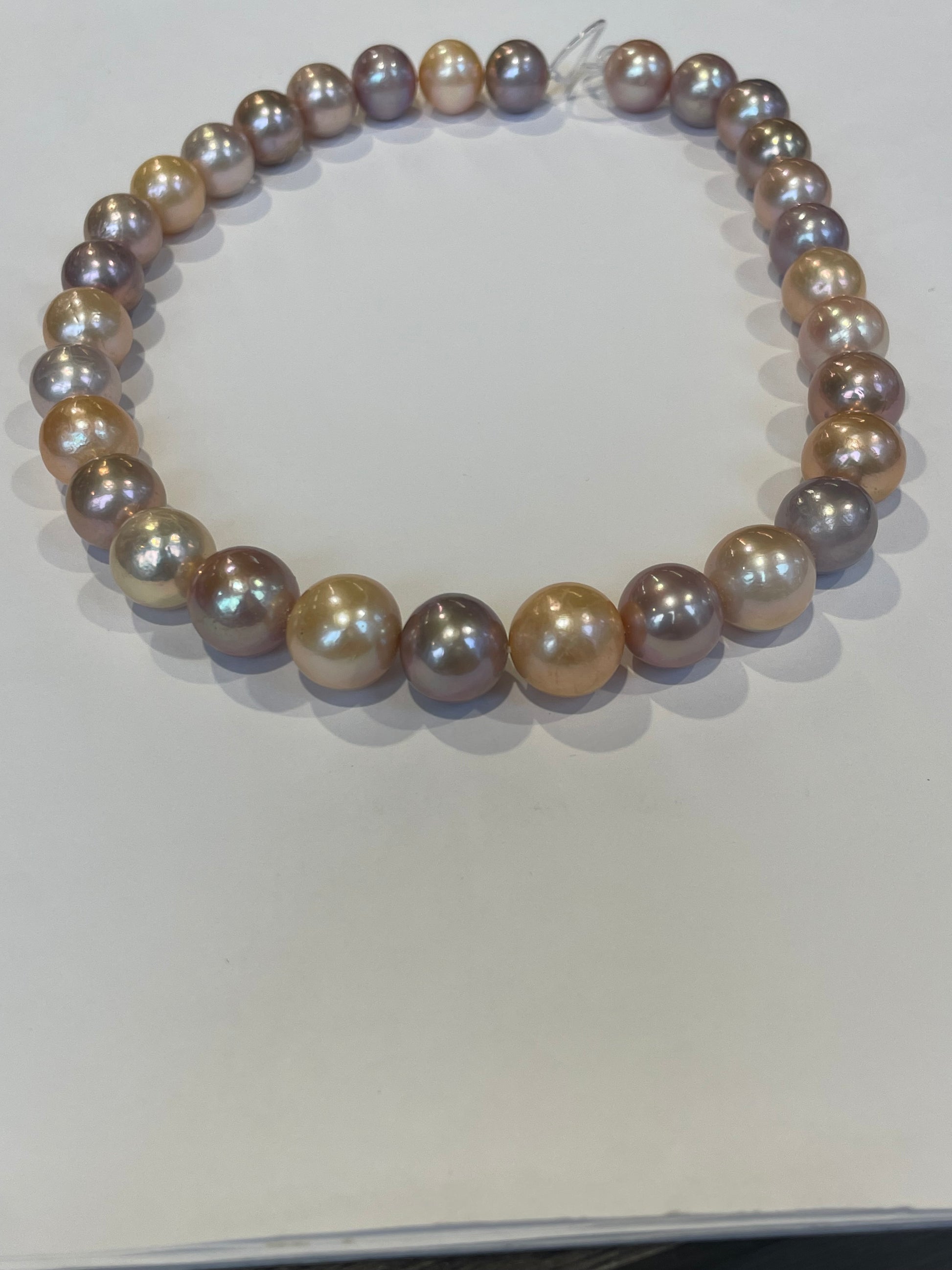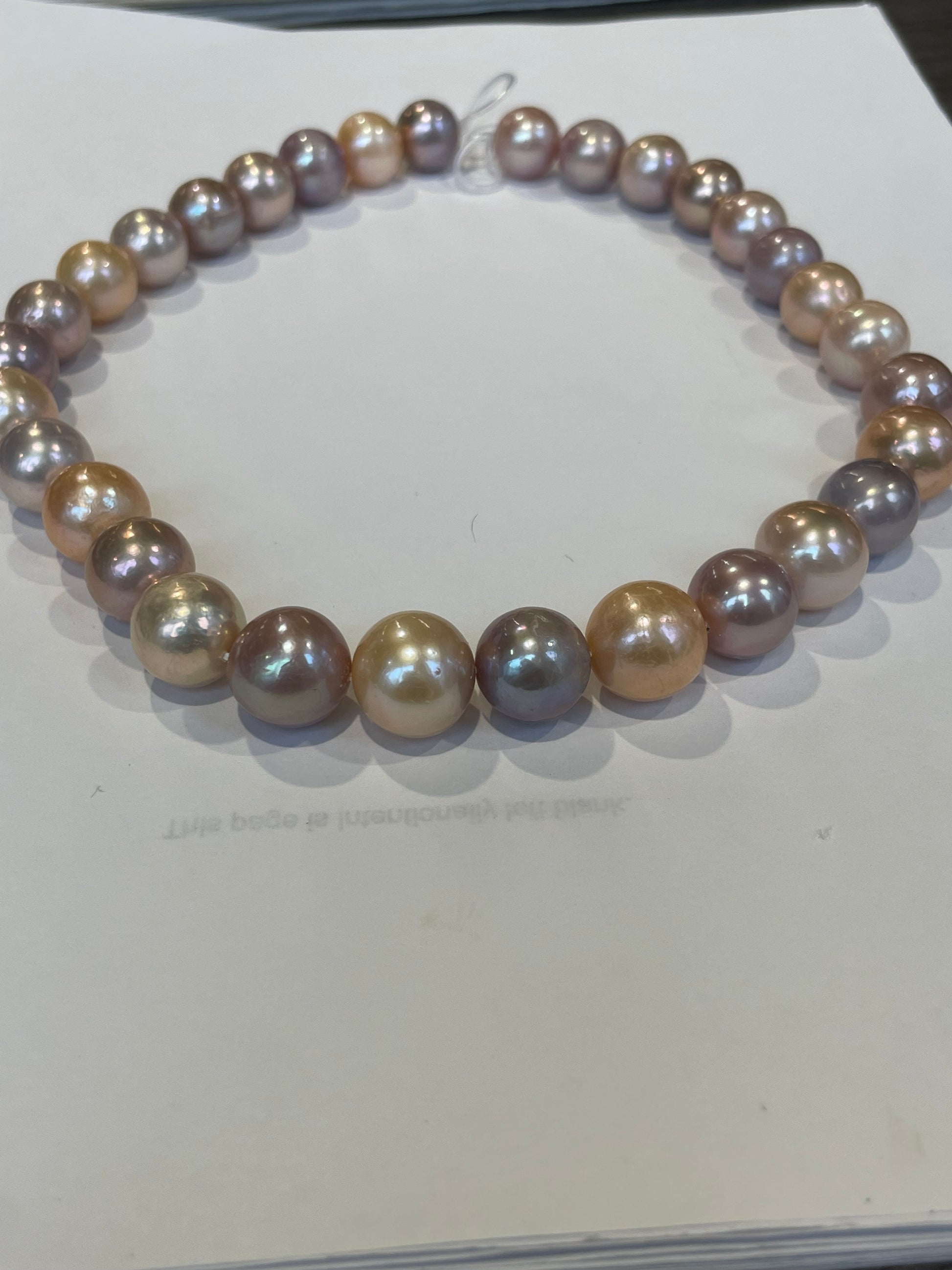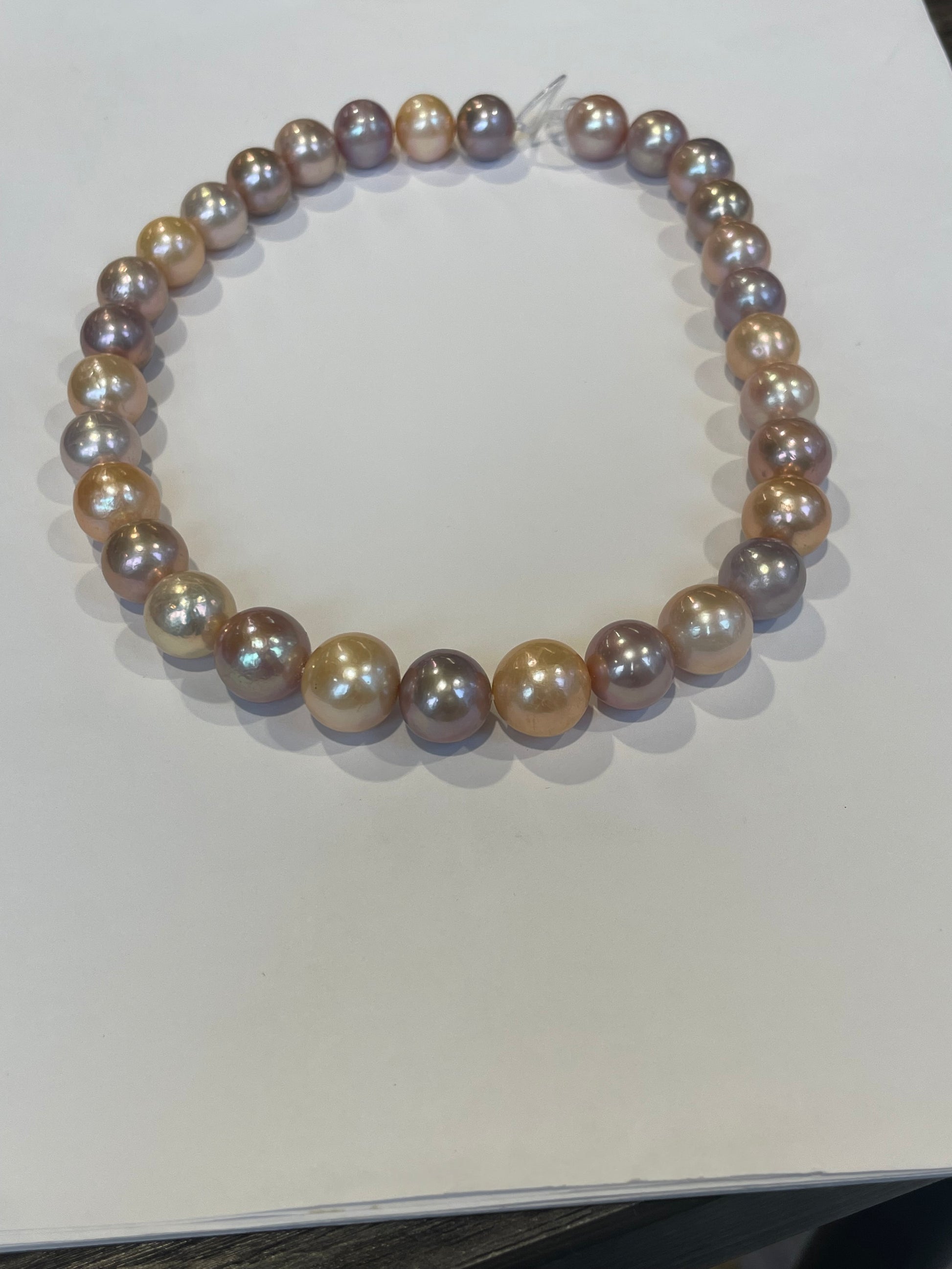 Multi Color Cultured Freshwater Pearls. 15x13mm. Great mix of Colors. 17”. With a 14k Gold Ball Clasp. $800.00