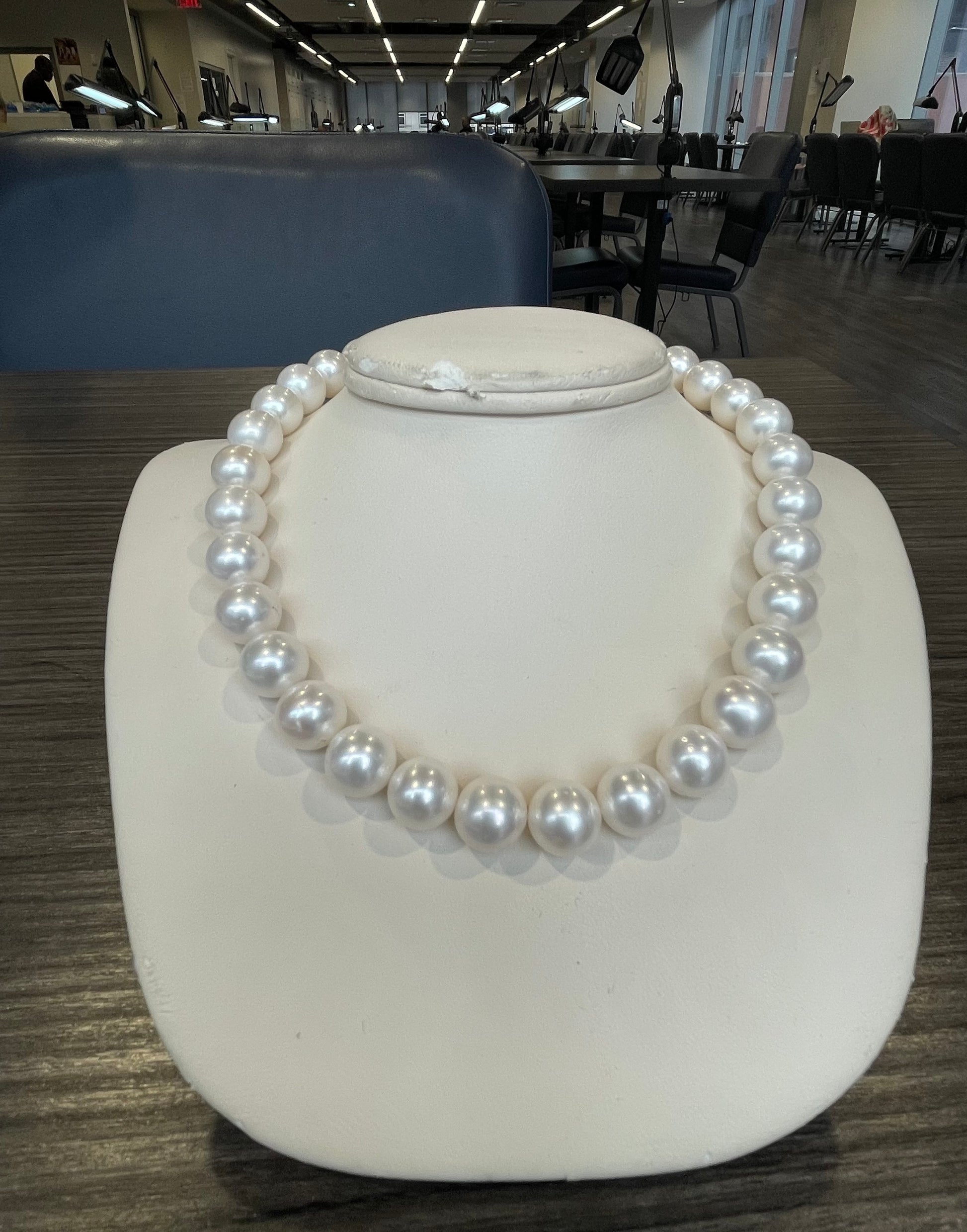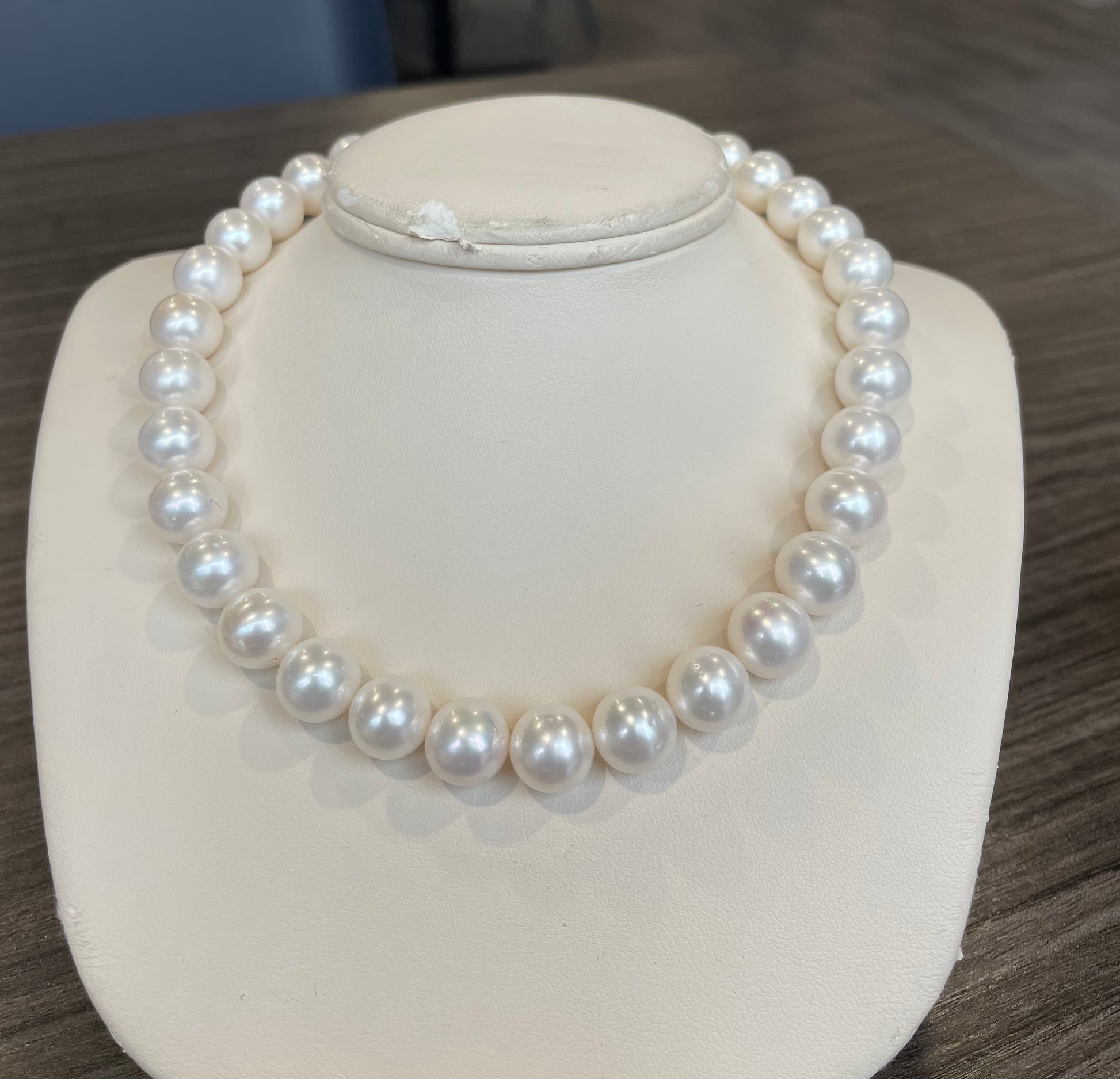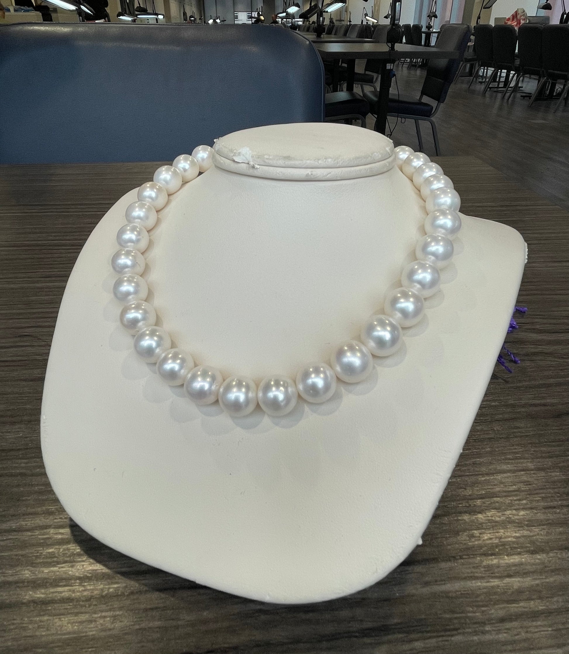 11.5mm Round Freshwater Pearls. 17” with. Gold Ball Clasp Nice Color. No Flaws Round