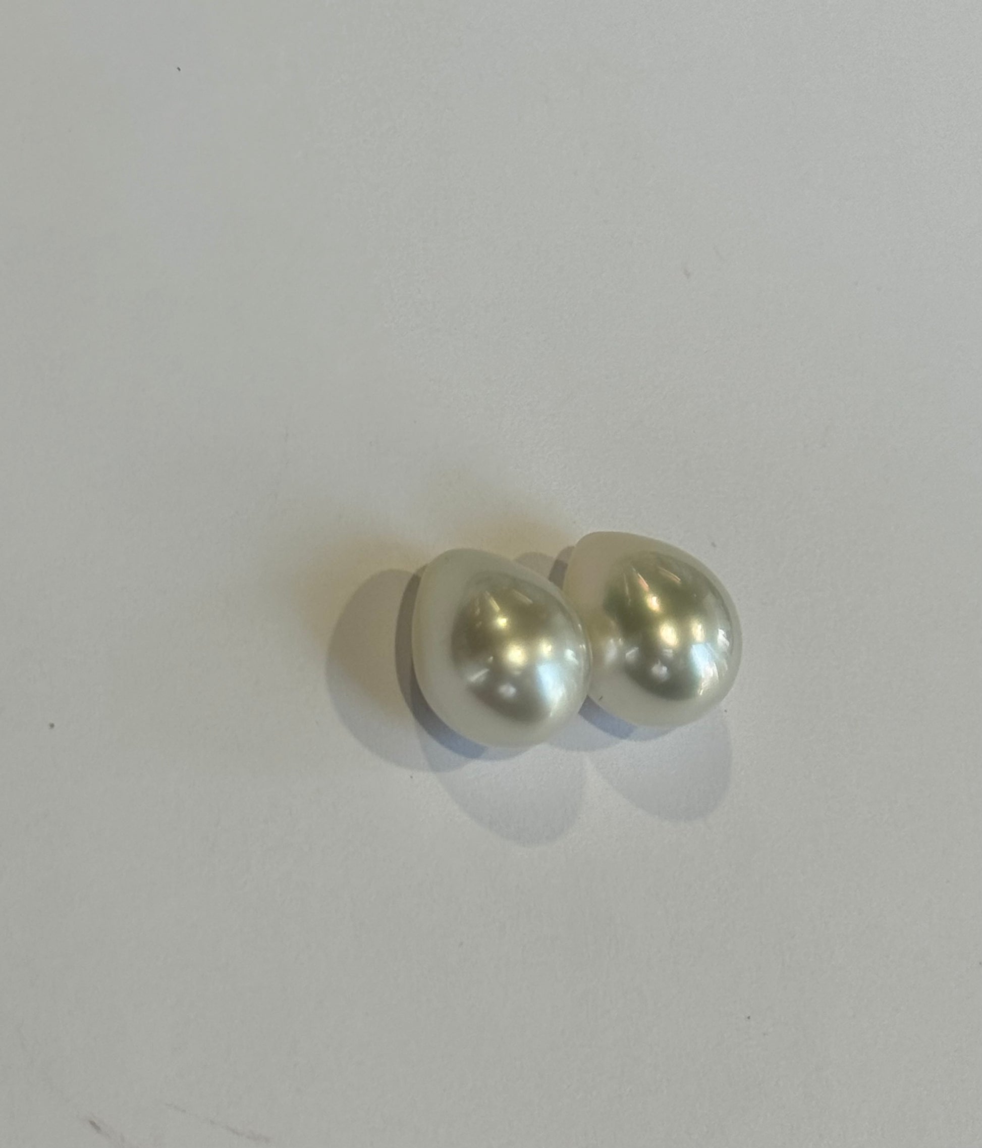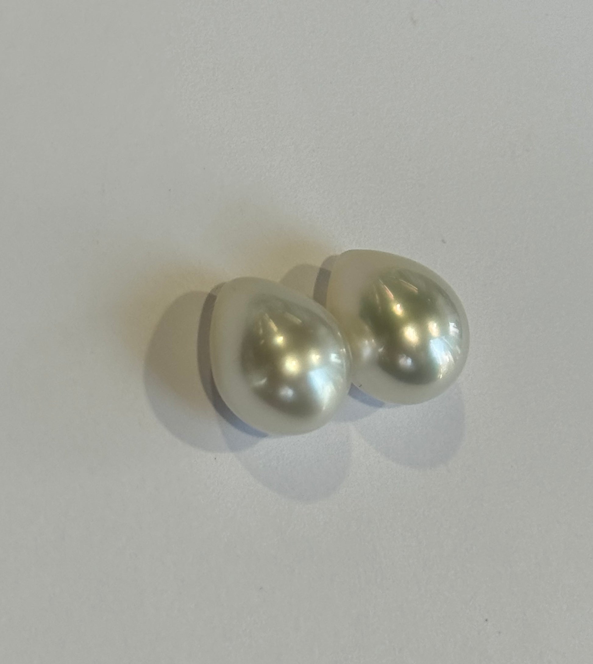perfectly shaped drop shaped South sea pearls 14.8 x 12.8 mm perfectly matched beautiful color and luster. Rare Tear Drop South Sea Pearls