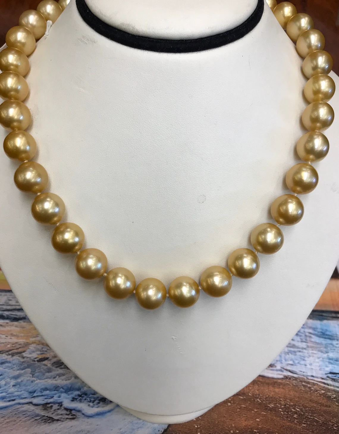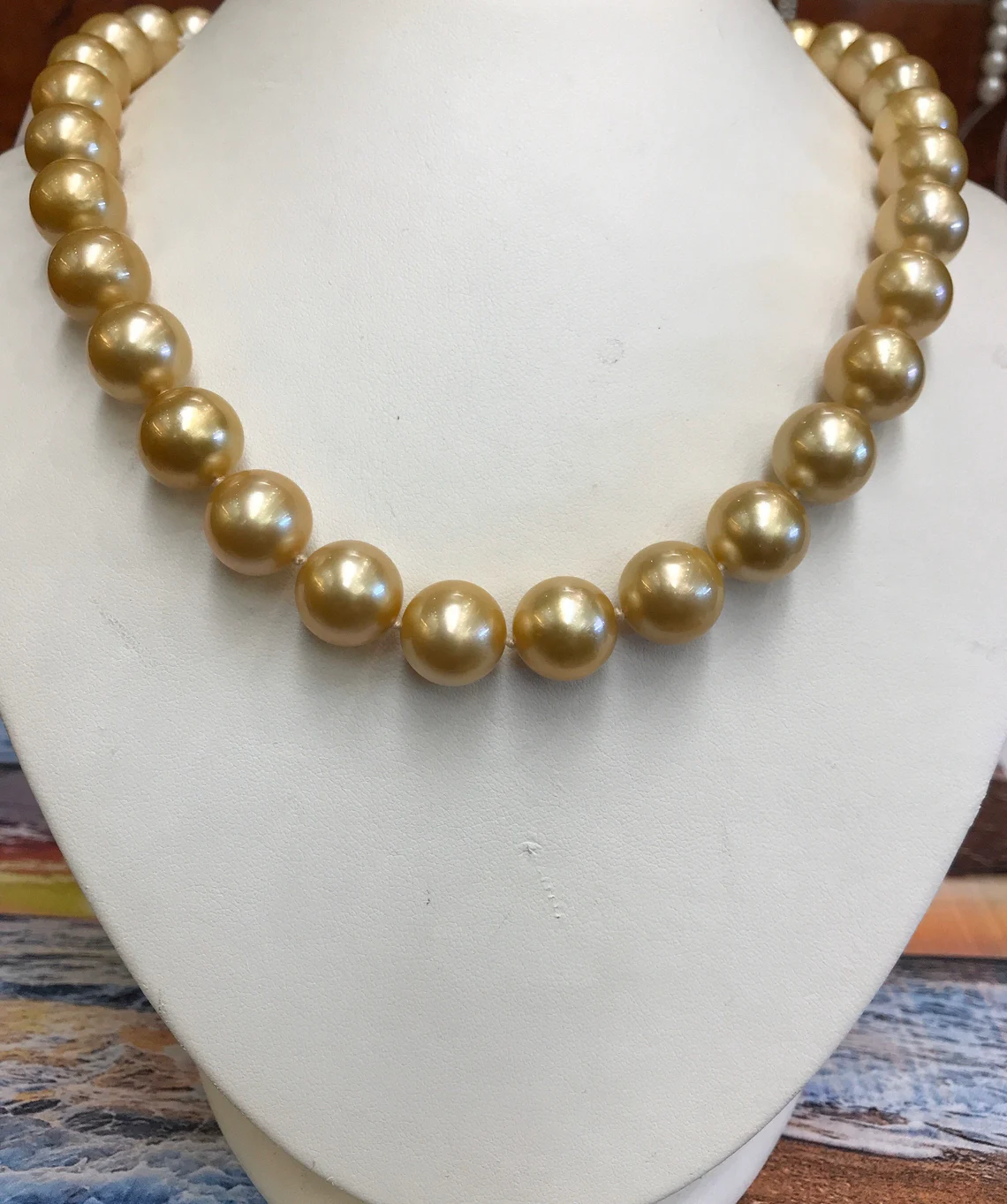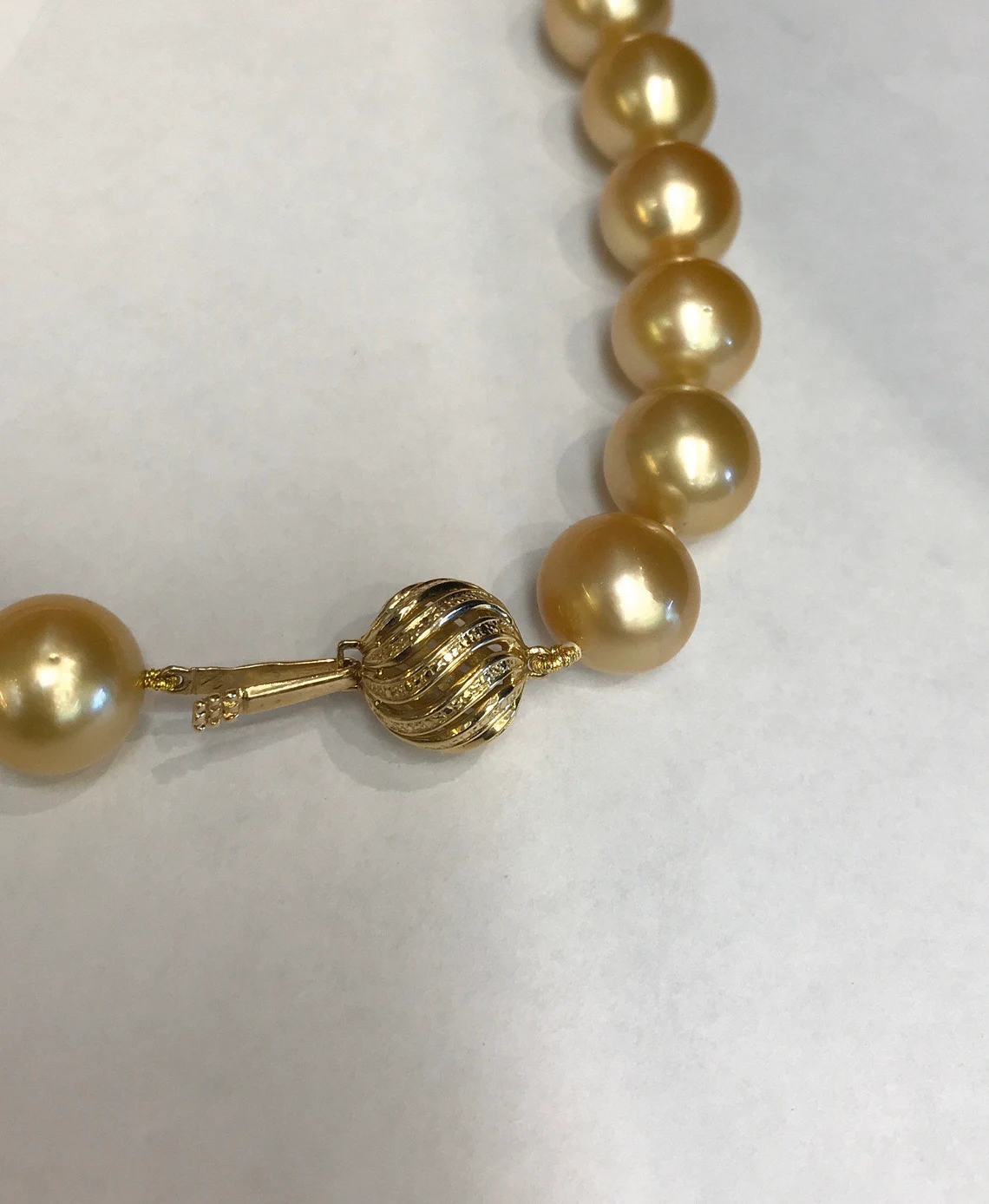 South Sea Gold Pearls 12x13mm High Polish & Deep Gold Color Tarnish Free 18" 14K Gold & Diamond Clasp AAA Quality